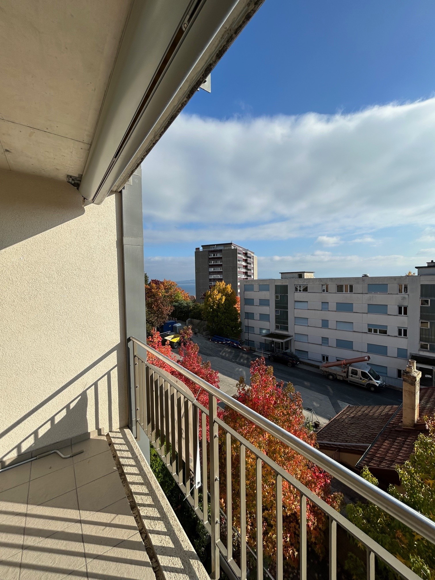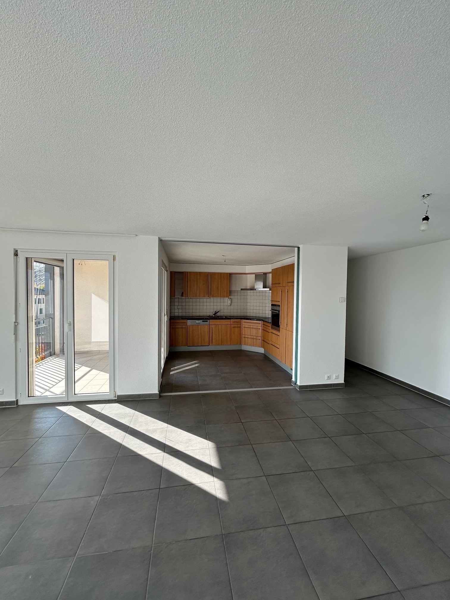 Ce charmant appartement de 4.5 pièces au 2ème étage avec ascenseur comprend, un spacieux séjour donnant accès à un balcon, une cuisine entièrement agencée avec parois de séparations coulissantes , un hall avec armoires, deux chambres, une salle de bains/WC, une chambre parentale avec salle de douche.